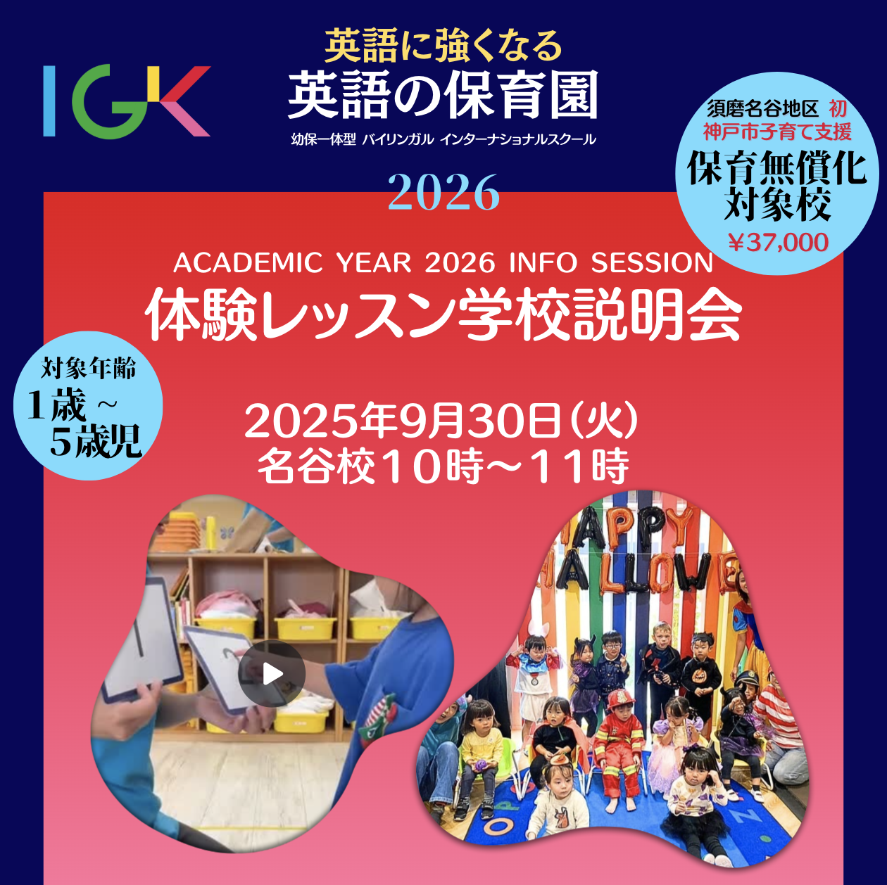 /2025年12月1日 更新 IGKではこれから入園を控えるご家族様向けの 「体験入園&説明会」を開催いたします。 開催日時:2025年12月17日(水)10時ー11時 開催日時:2025年11月26日(水)10時ー11時 実施終了  …